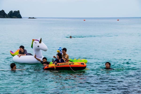 若狭和田海水浴場は、とても設備が整った海水浴場で、アジアで初の国際環境認証「BLUE FLAG」を取得したり、「日本の快水浴場百選」に選ばれたりととても快適な海水浴場です。